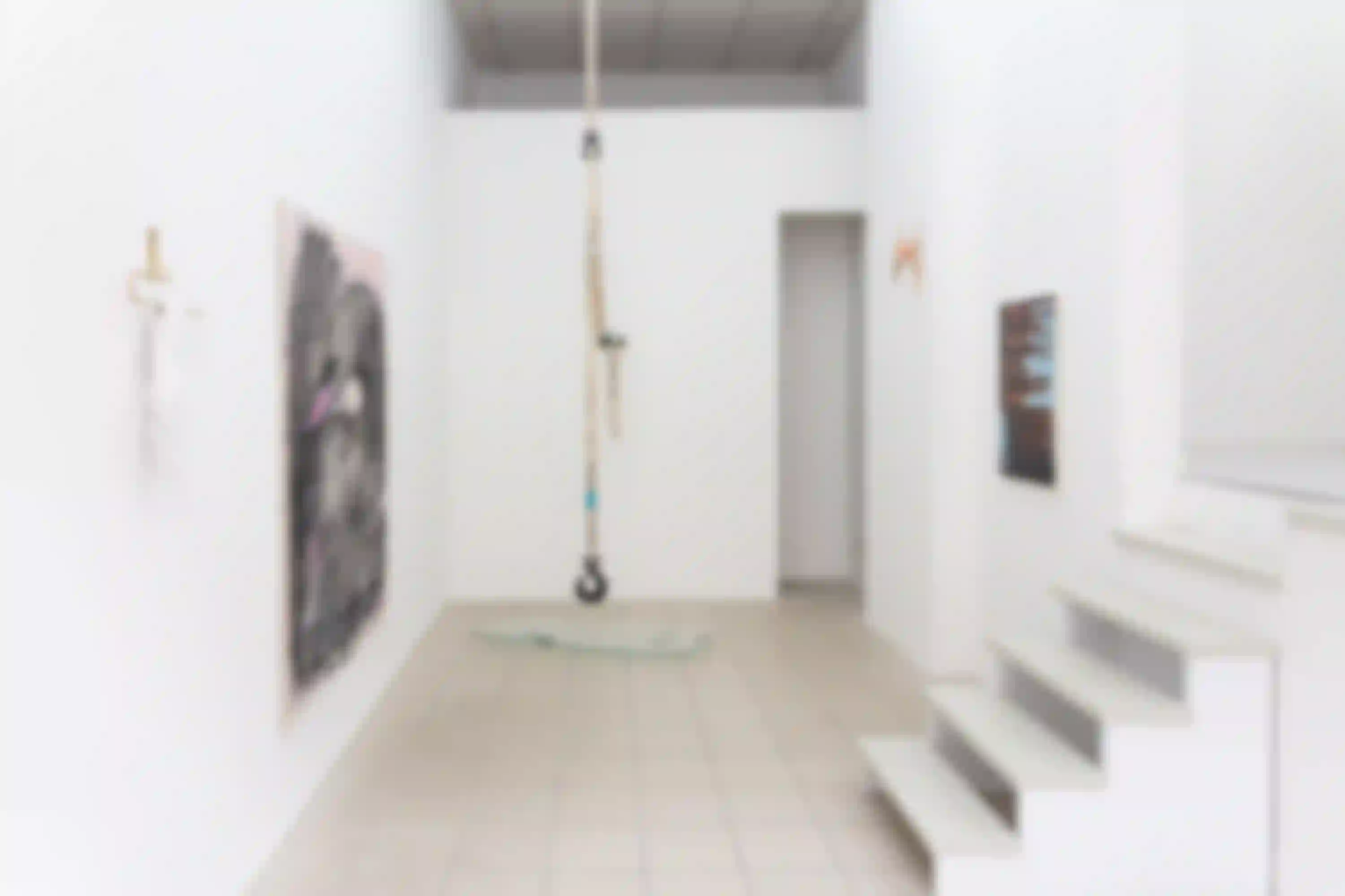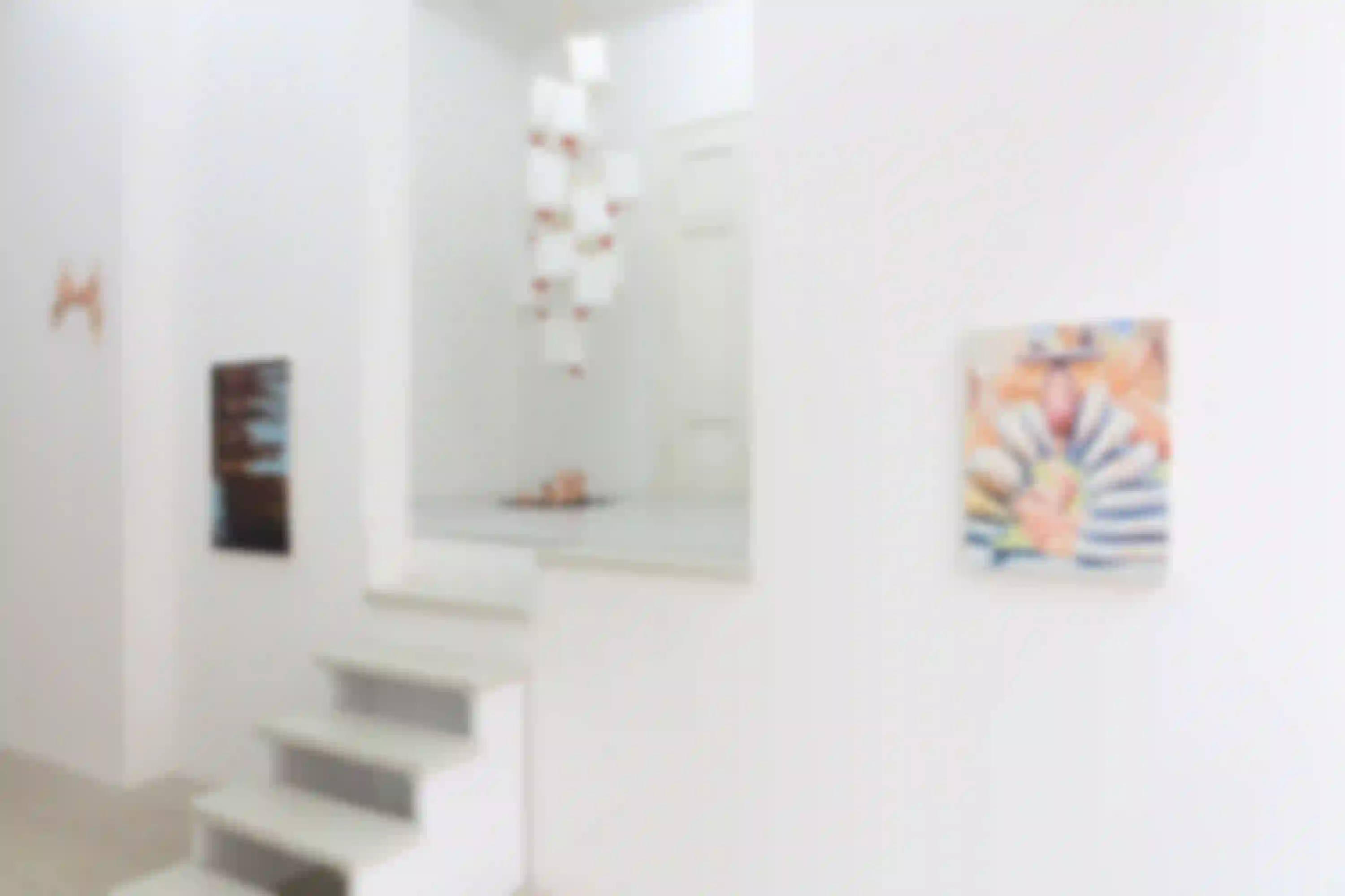 Leere Gläser, verwischt mit ihrem leicht dreckigen, kaugummirosa Hintergrund. Es entsteht glatt der Eindruck, es ließe sich noch eine verklungene Musik erahnen. Es ist unklar, ob die Gläser gerade geleert sind, oder darauf warten wieder gefüllt zu werden. Unklar, ob das Motiv auf eine vergangene oder zukünftige Temporalität verweist, woraus Gemma Sotos “Escena IV/ Reunión” eine ambivalente Spannung schafft. Auch der Titel, übersetzt “Szene IV/ Versammlung” lässt uns zweifeln, ob wir einen schwachen Moment der Nostalgie betrachten, oder die Spur einer zukünftigen Gemeinsamkeit. Es ließe sich vielleicht auch gleichsetzen mit einer alltäglichen, sich-sehnenden Zeit und den überschwänglichen Versuchen des Ausbruchs aus dieser.