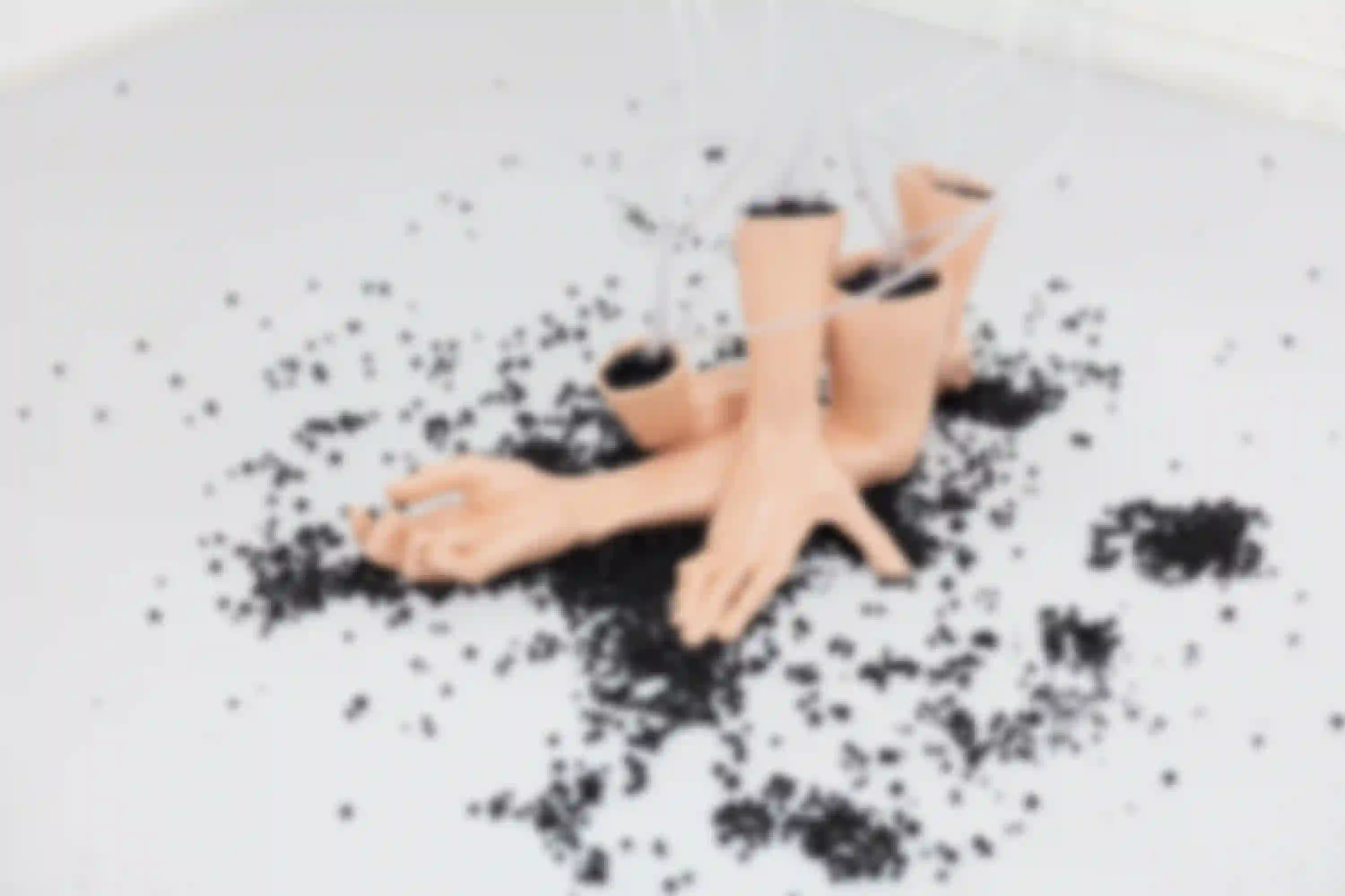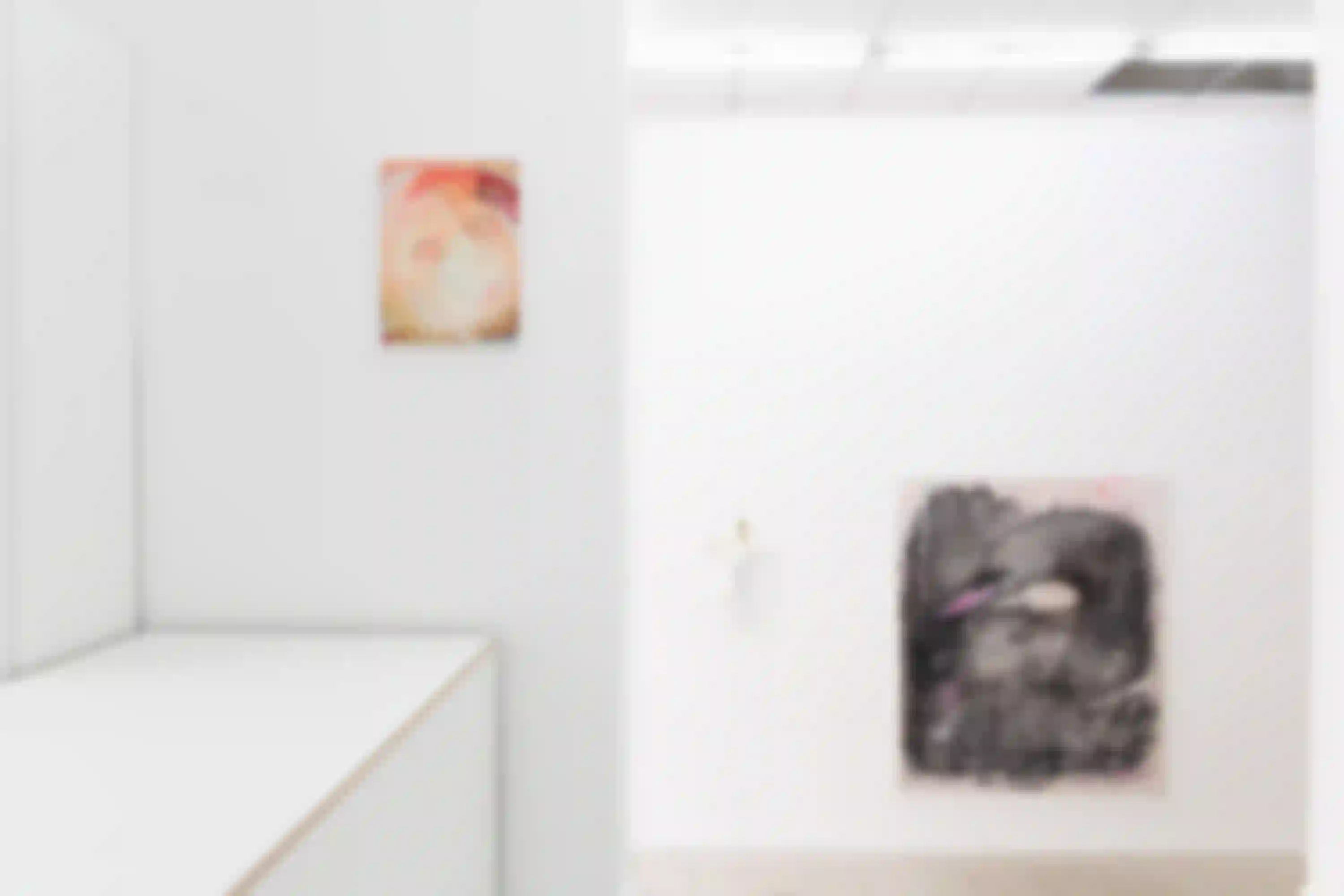 Diese Versuche des Ausbruchs sind in den verschiedenen Facetten der versammelten Werke zu finden. In Lubes Objekten, die mithilfe ihrer Lost&Found-Methodik die zugrunde liegende (Aus-)Sortierungslogik des Alltags beschwören, wird dies erkennbar. Ein Twist davon sind die Fotografien “”, in denen sie selbst ihre aussortierten Objekte inszeniert. Eggers und Thorday bespielen derzeit zwei Seiten einer Münze von Betrachtungen des Alltags. Thorday sieht das sakralisierte, beschleunigte Produkt noch in Schlieren, welches uns aus der Tristesse zu befreien verheißt, während Eggers die Auswirkungen dieser lähmenden Beziehung auf unsere Gehirne und Muskeln einfängt: das Figurative vollends verschwommen, in den wellengebrochenen Spiegelungen von “Utsuroi 7” (Tr.: “gradueller Wechsel (von Licht und Schatten)”).